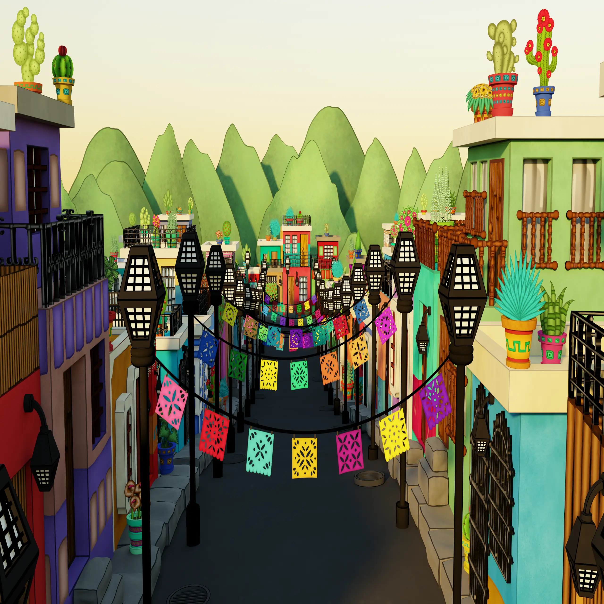 Inspired by my time living and travelling In México, espectally San Cristóbal de Las Casas and Guanajuato. Everything is made by me from scratch. 30 modelled objects and digitally hand panted 2D textures and drawings, animated and/or placed into 3D space.